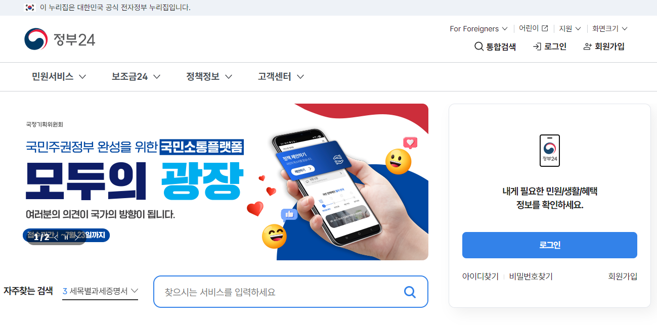 1. ์ •๋ถ€24 (www.gov.kr)